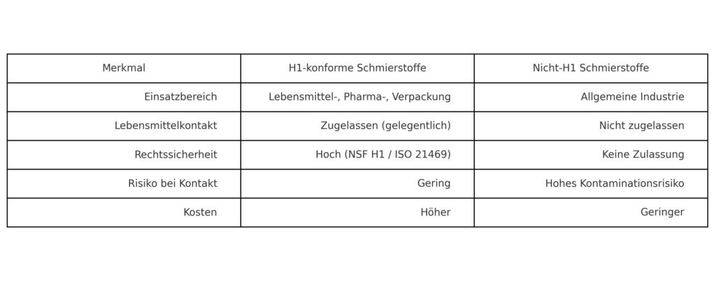 In sensiblen Fertigungsprozessen, wie zum Beispiel in Reinräumen, in der Luft- und Raumfahrt, der Erstausrüstung (OEM), Automobilindustrie, Lebensmitteltechnik oder in geräuschsensiblen Umgebungen sind besondere Anforderungen zu erfüllen. In der Lebensmittel- und Pharmaindustrie beispielsweise treten häufig mehrere der aufgezeigten Einflüsse parallel auf. Die Stabilität der Schmierstoffe gegenüber branchenüblichen Reinigungs- und Desinfektionsmitteln ist darüber hinaus unerlässlich. Überall dort, wo bei der Schmierung der Kontakt mit Lebensmitteln oder pharmazeutischen Produkten nicht ausgeschlossen werden kann, sollten unsere nach DIN EN ISO 21469 produzierten und NSF-H1 beziehungsweise InS-H1 zertifizierten Schmierfette eingesetzt werden.